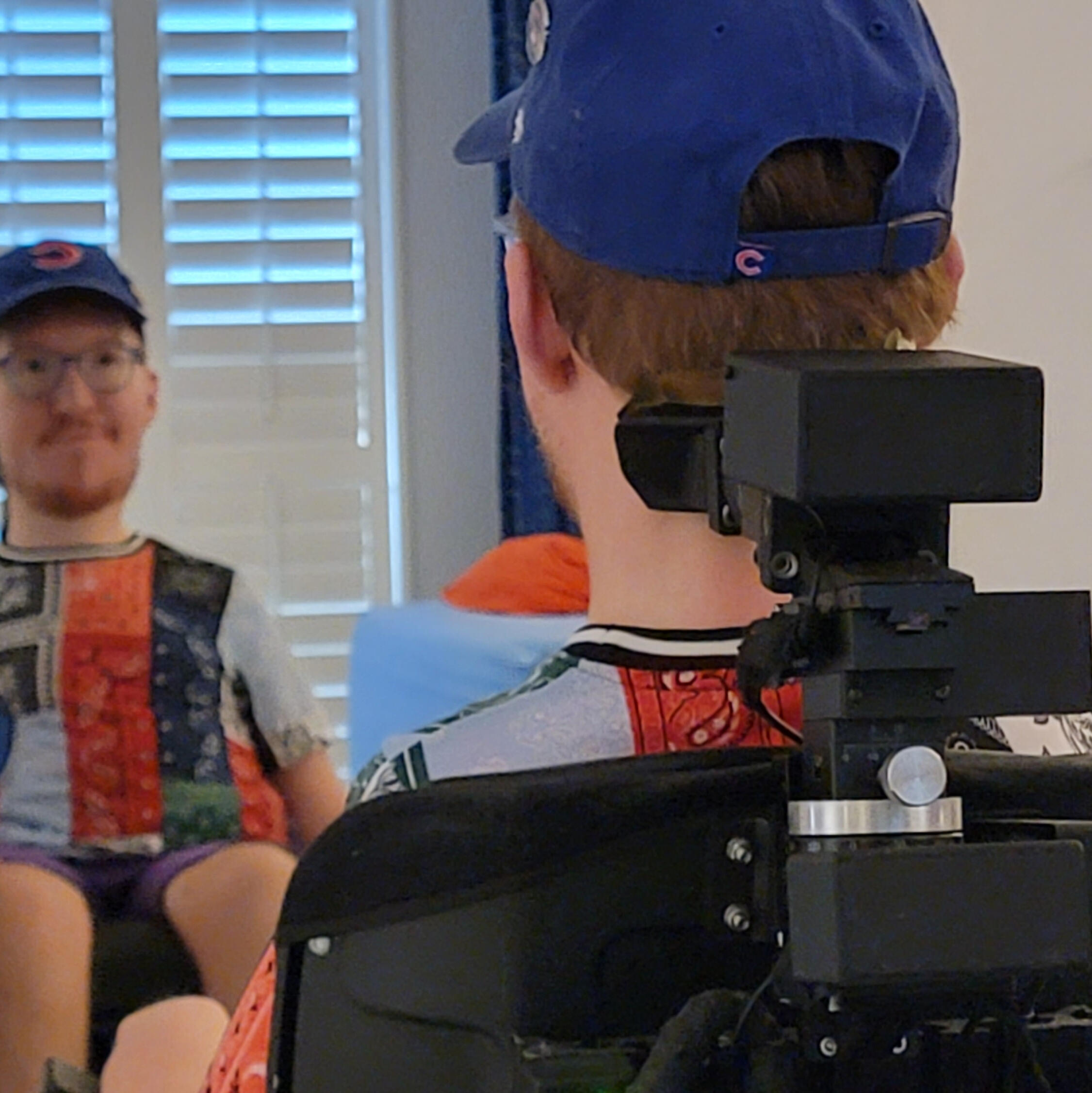 The system can be attached to many wheelchairs using the standard headrest mount and custom metal adapters.