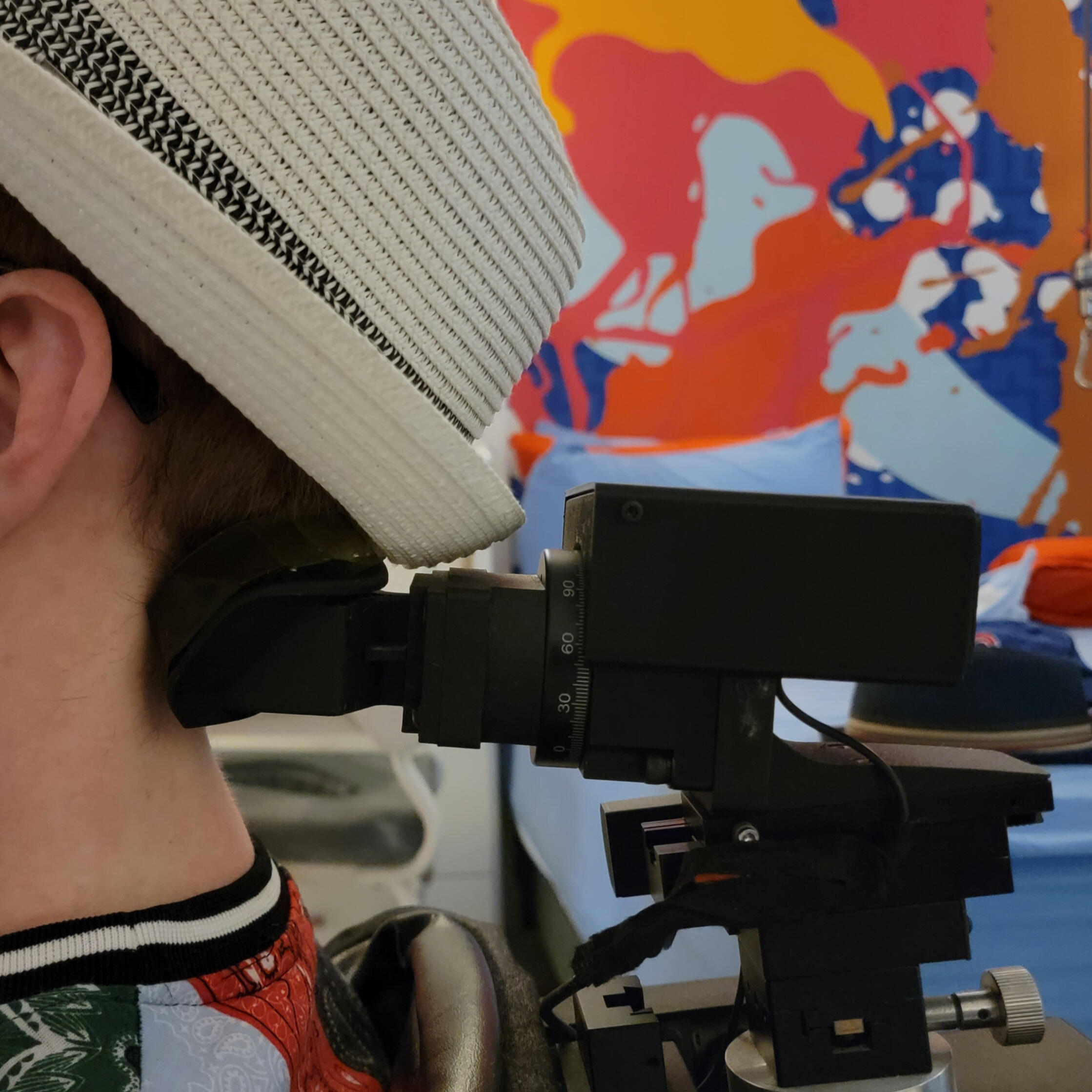 The system is attached to the wheelchair through the headrest mount along with electronics and wire harness.
